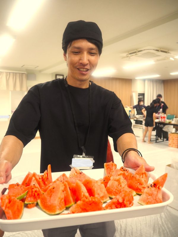 過去のブログでも紹介させていただいた、国立ロータリークラブ様と協働で近隣の畑で育てたスイカを用いました。