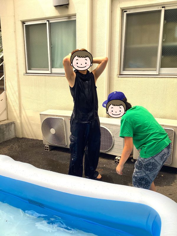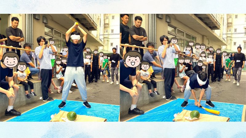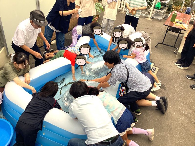幼児、小学生、中学生、高校生と皆が順に行いましたが、なかなか割ることができず…。しまいには、マスを泳がせるために使用していたプールに“うっかり”ダイブしてしまった高校生男の子も。場を最高に盛り上げてくれてありがとう!