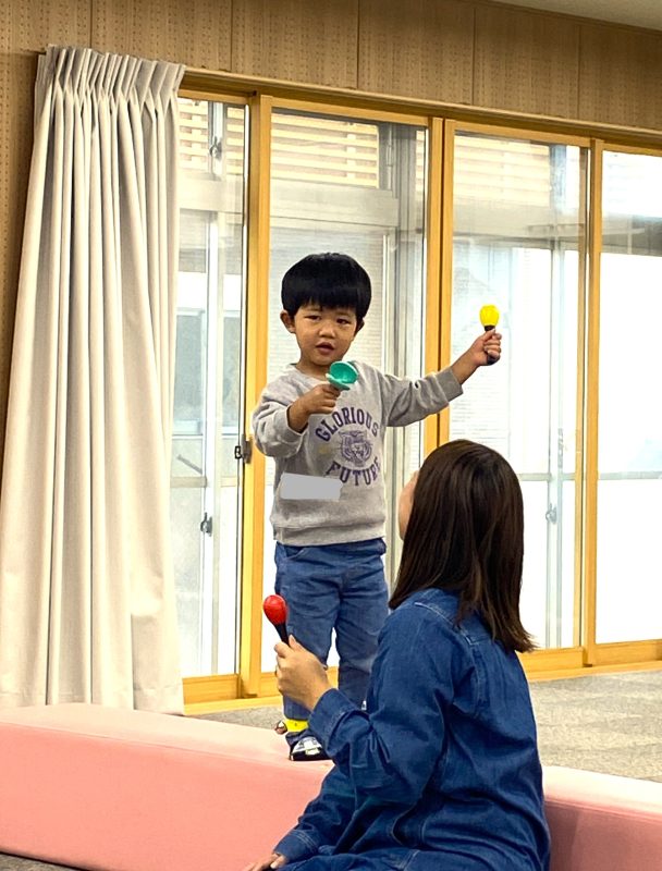 普段から音楽やお歌が好きな男の子はお部屋の中を動き回りながら全身を使って表現をしていて、とても楽しそうでした。それを見ている大人も一緒に参加したり自然と笑顔がこぼれてきました。