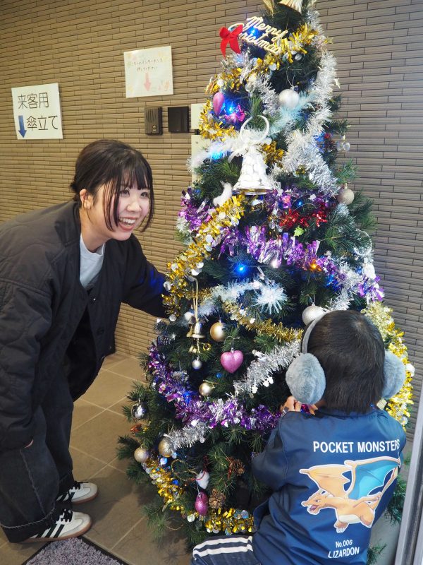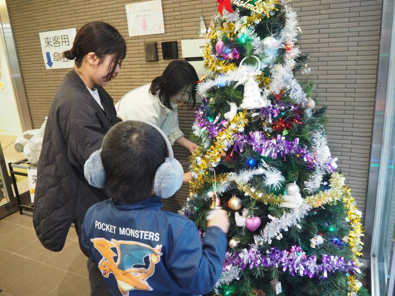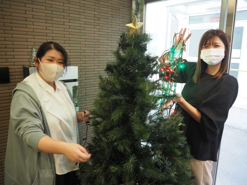先日、職員複数で玄関の飾り付けを行い、クリスマスツリーやオーナメントを飾り、入口がパッと華やかになりました✨