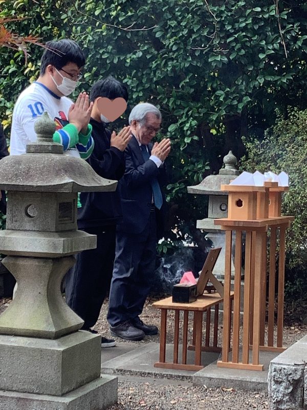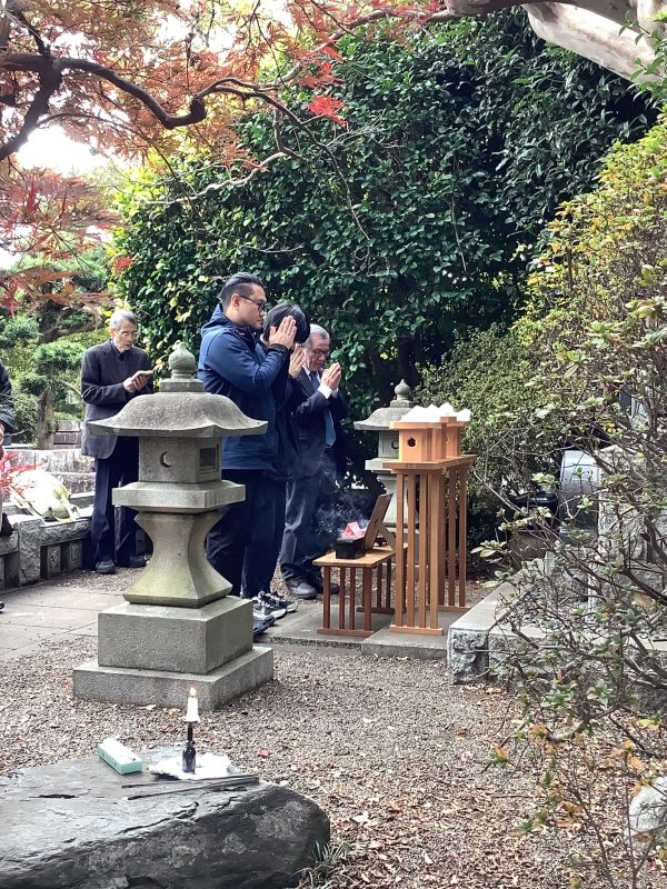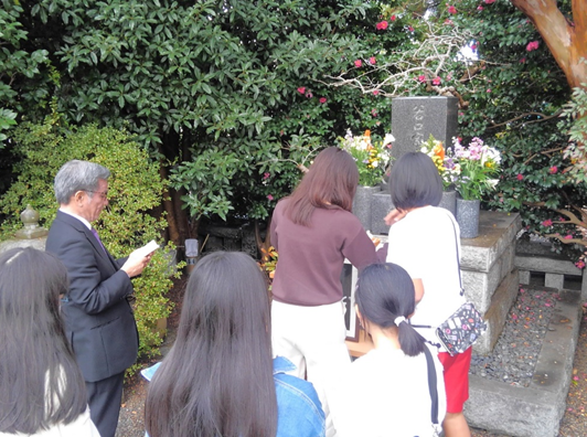 お参りのあと、先導していた職員から「お線香をあげて祈り始めたら、雲の間から日が差して、背中がぽかぽかしてきました」との話がありました。みんなの祈りが、そっと先生に届いたのかもしれません。