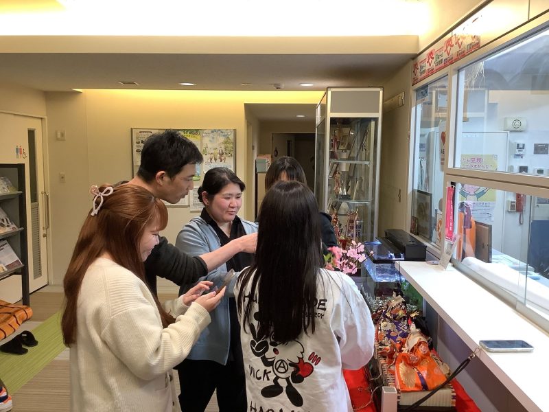 箱を開けると、「一年ぶりだね」「やっぱりきれいだね」と自然と会話が弾み、和気あいあいとした雰囲気の中で準備がスタート。飾り方を確認しながら、「お内裏様とお雛様の位置ってどっちだったかな?」とスマホで調べる場面もあり、笑い声がこぼれるひとときとなりました。