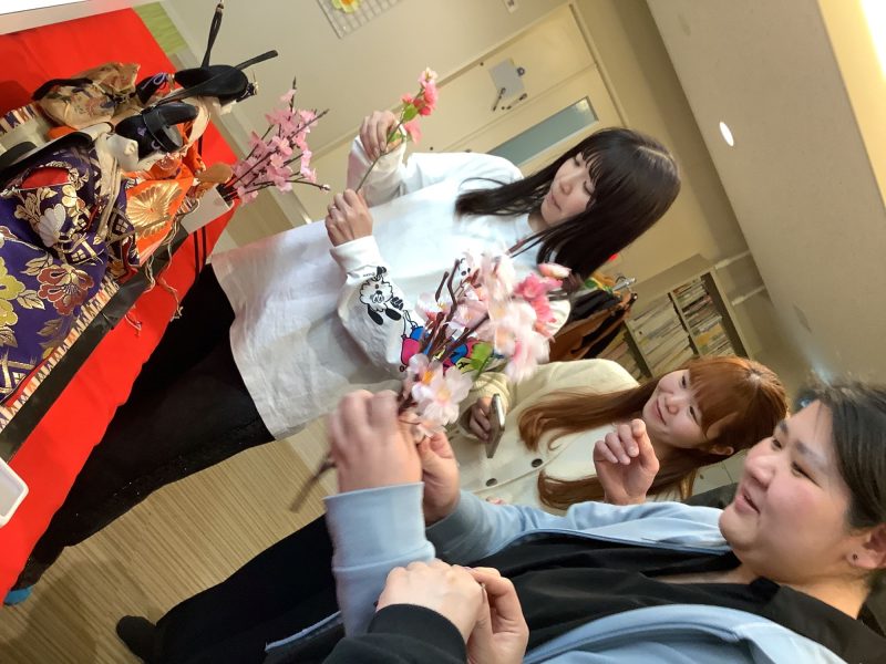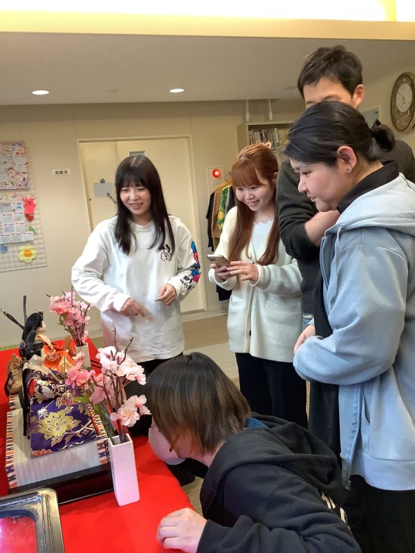 玄関に華やかな雛人形が並ぶと、施設内がぱっと明るくなり、春のあたたかさを感じます。子どもたちが足を止めて眺めたり、「きれい!」と声をあげたりする姿を見るのが、今から楽しみです。