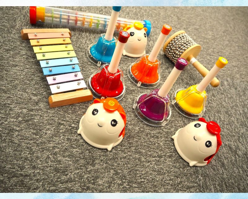 特に人気だったのが、動物の形をしたデスクベル!ボタンを押すだけで簡単に音が出せて、小さなお子さんでも自分で音を鳴らすことができます。音楽療法の様々な現場でもよく使用される楽器です。